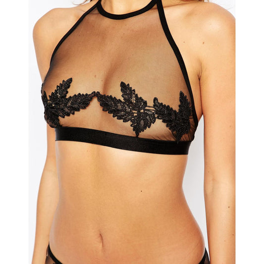 Leonisa Sheer Black Lace Bustier Bralette with Underwire