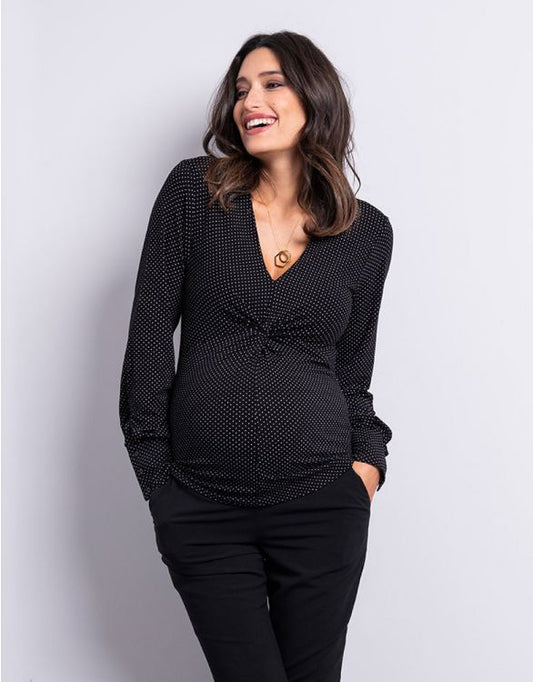 Seraphine Maternity Black Polka Dot Twist Maternity Top Tilda