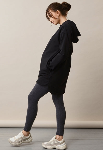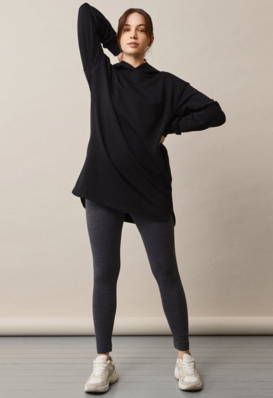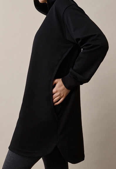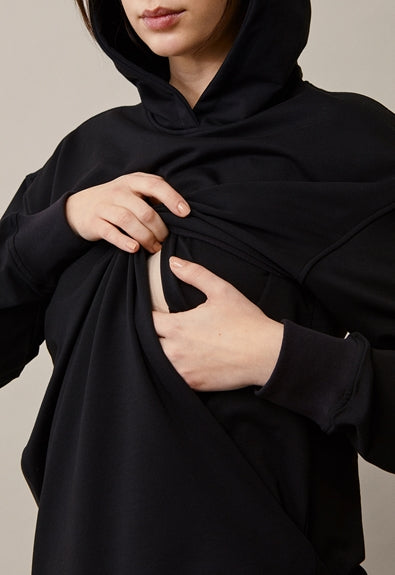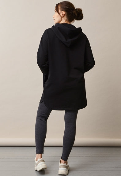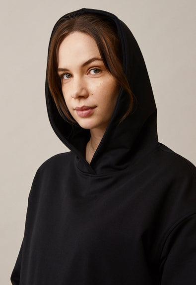 An oversized hoodie that leaves plenty of room for you and your personality. With a generous fit, extra length at the back, and a double layer of material in the hood. Under the kangaroo pocket hides a smart opening for easy nursing access. It's just what the name implies: a bestie to take with you all the way through pregnancy and breastfeeding.