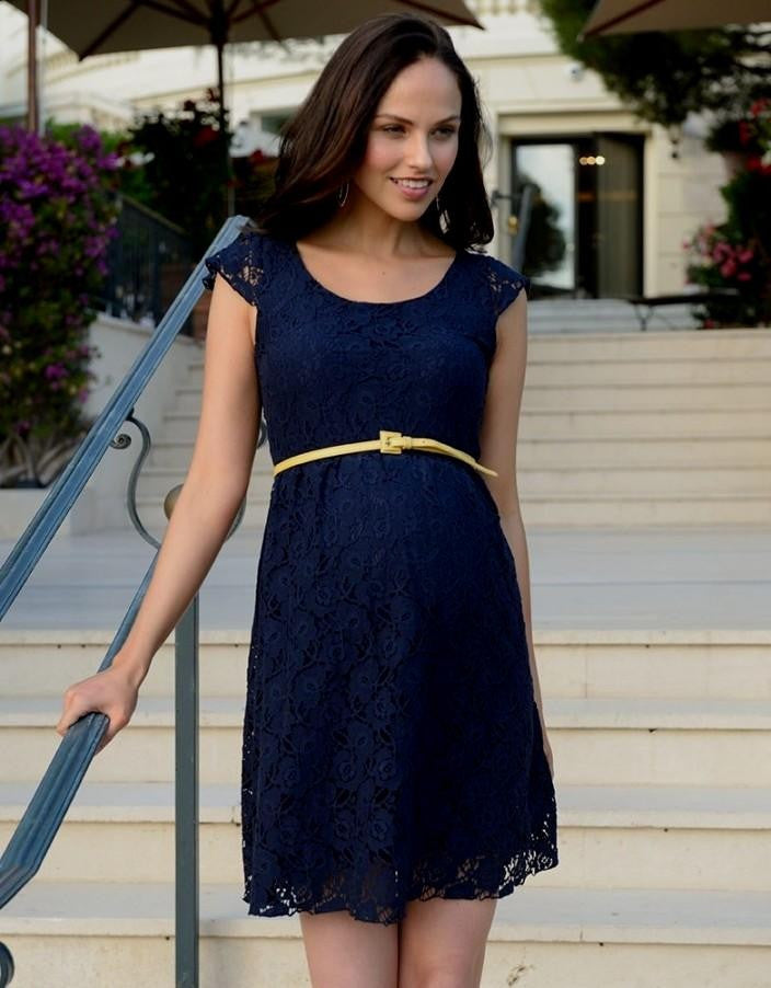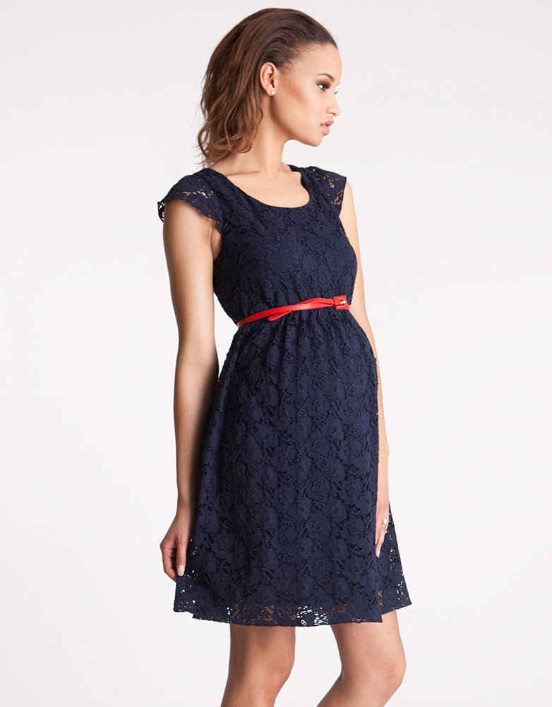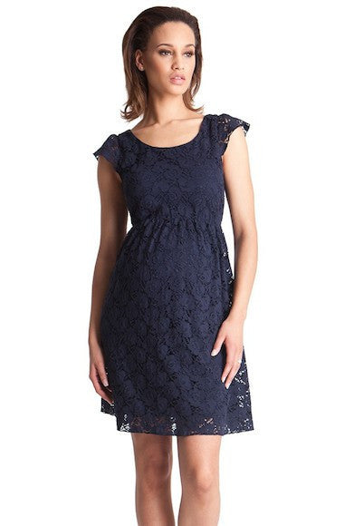 Made in luxurious cotton lace, and fully lined in ultra-soft stretch viscose, this little navy maternity dress is kind and gentle against sensitive skin. The delicate floral pattern in the deep navy blue lace combines with cute capped sleeves and a flattering boat neckline for an ultra-feminine effect.