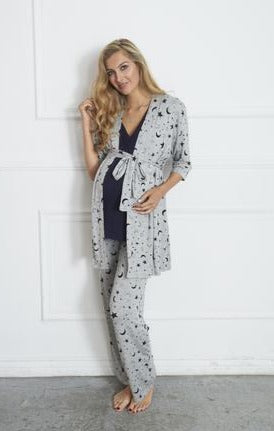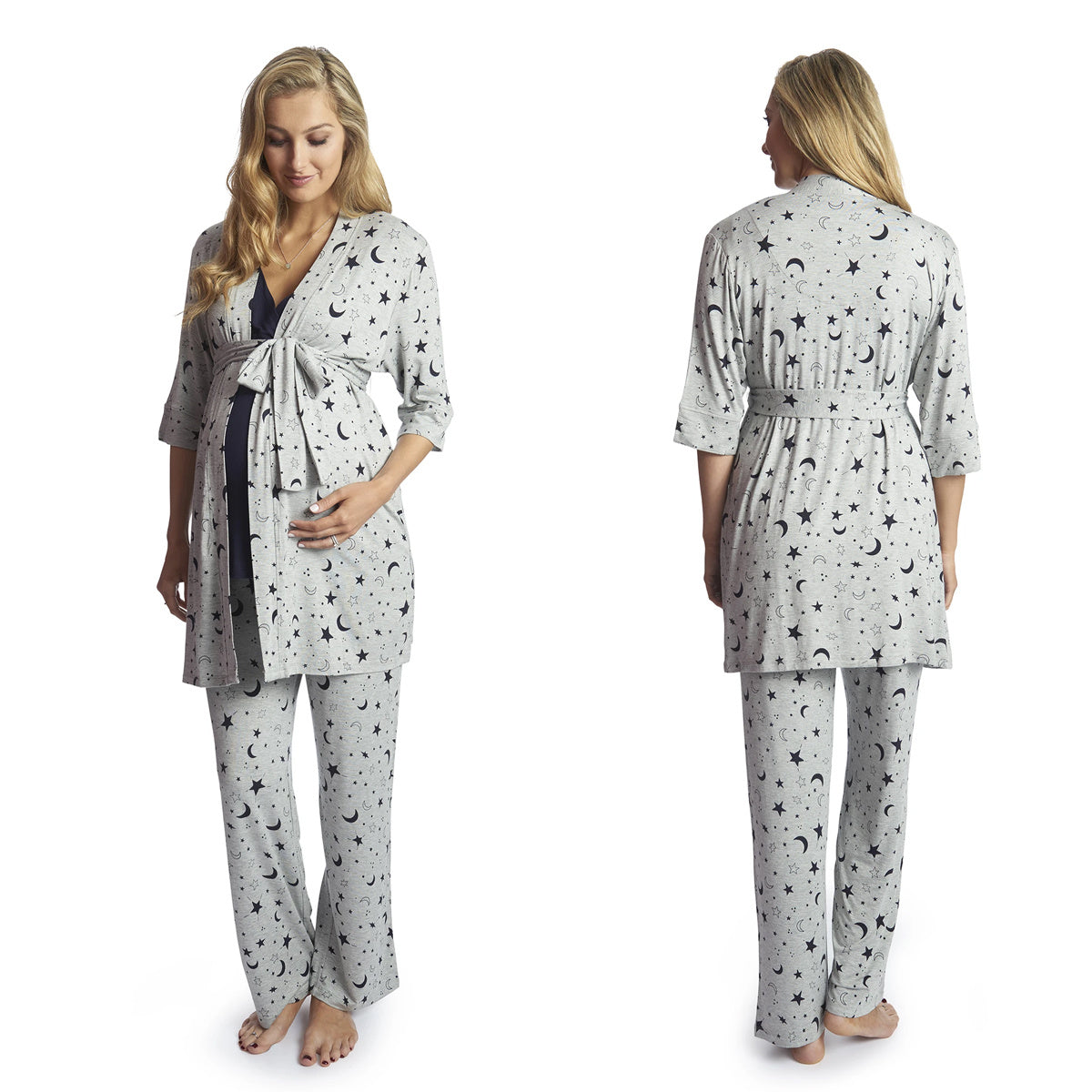 - Set includes maternity/nursing top, pant, robe, newborn gown and hat(0-3M).