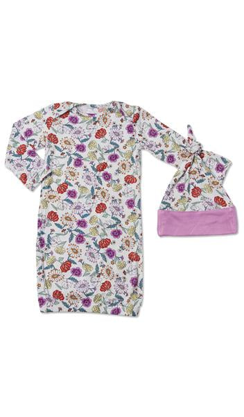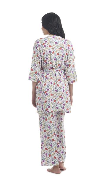 The sooner you get it - the better! It comes complete with a matching robe (with detached belt), sleeveless nursing friendly top, elastic smocked waistband full length pants, baby gown (0-3 months), and matching baby hat (0-3 months).