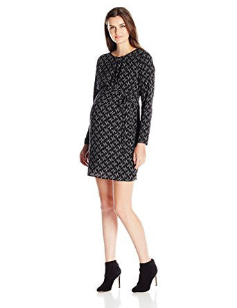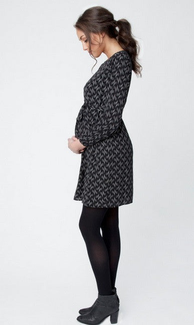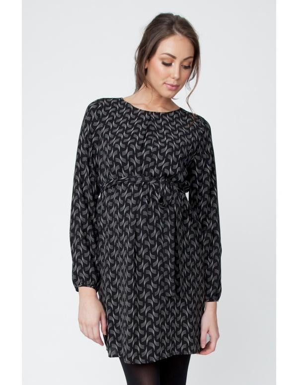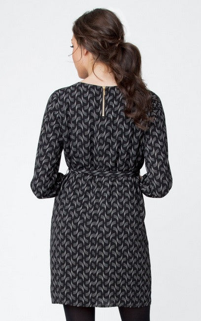 Look fabulous in the office or a night out with hubby with the Soundwave Maternity Dress. Made in a soft woven fabric with a soft jersey lining through the body and a self fabric belt to create shape. With a box pleat at front neck and a gold zip detail at back neck. This is a very pretty, high quality piece with excellent finishing.