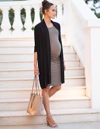 Two essential styles in one, Seraphine's Bodycon Maternity Dress with Waterfall Cardigan offers versatile styling options. The bodycon dress in chic stone grey is designed to hug your curves, offering a flattering fit through every stage of pregnancy. While the black cardigan cover up tempers the figure-hugging dress with a more flowing waterfall-style silhouette. Wear them together or style them separately – either way, this is a desk to dinner must-have.