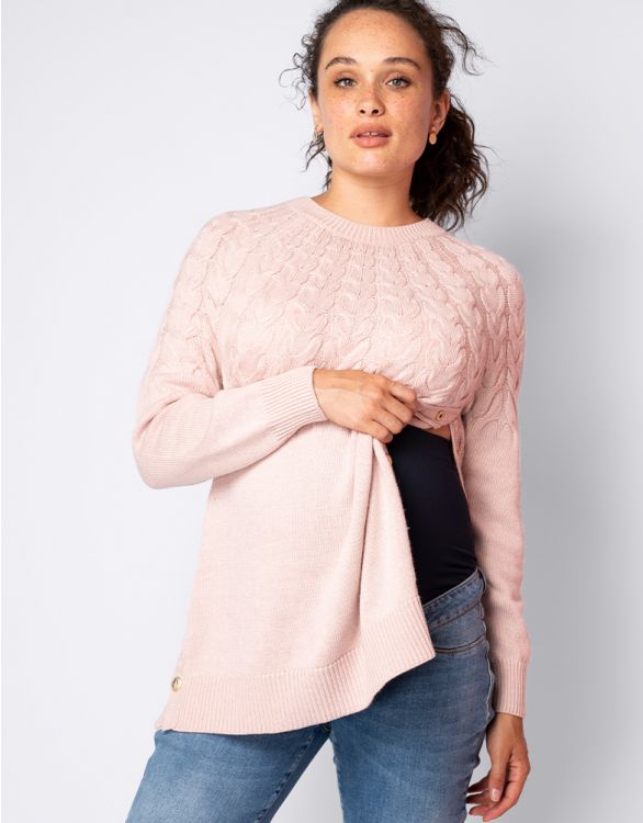 Seraphine Maternity & Nursing Blush Pink Cable Knit Sweater Hera