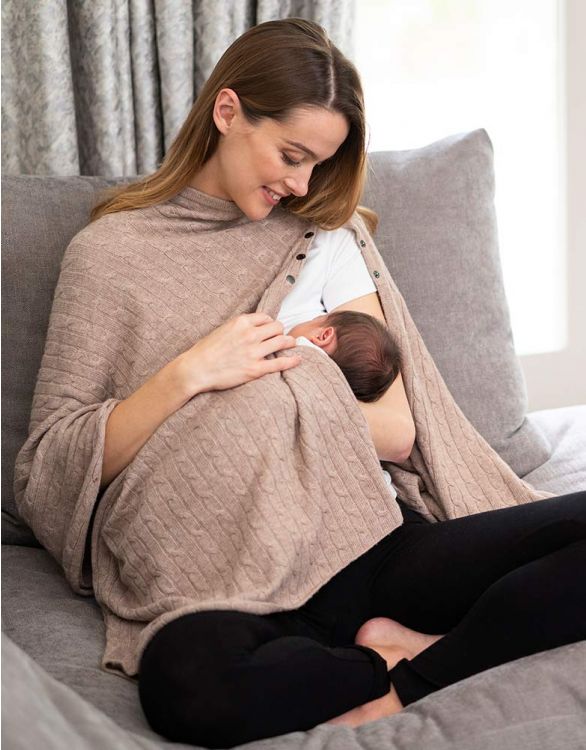 Invest in a touch of everyday luxury for you and your baby with Seraphine's ultra-soft Cable Knit Nursing Shawl. Blending natural cotton with springy lamb’s wool and cashmere, this is the perfect way to keep covered while feeding on the go. Stylish poppers secure at your shoulder to keep the shawl in place, but there are myriad different ways to wear it. Secure the style at your shoulder & wear it over jeans as a trendy cape, drape it over your shoulders as a loose pashmina, wrap up warm and wear it as a scarf, or even use it as a stylish swaddling blanket to keep baby safe and secure. The perfect baby shower gift, no mum-to-be should be without a stylish nursing shawl.