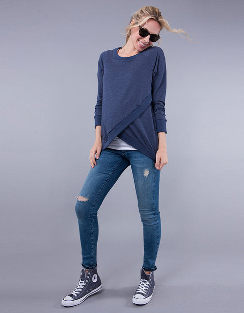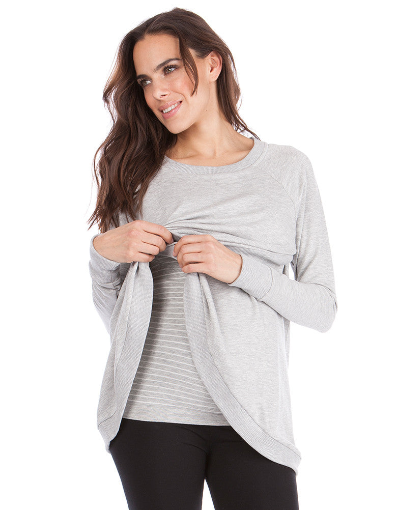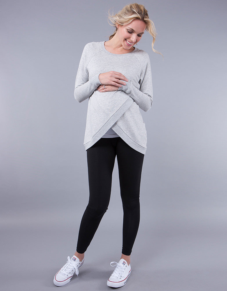 Made in the softest sweater fabric, the relaxed sweater drapes beautifully over your figure, while the crossover design offers a flexible fit for your growing curves.