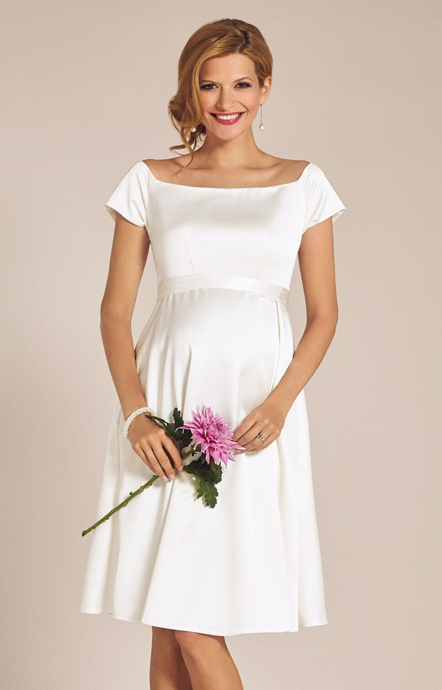 Tiffany Rose Ivory Satin Off-Shoulder Maternity Dress Aria with Pockets