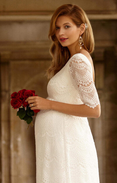 Soft and sensuous, our Verona long ivory maternity bridal gown is romantic and graceful.